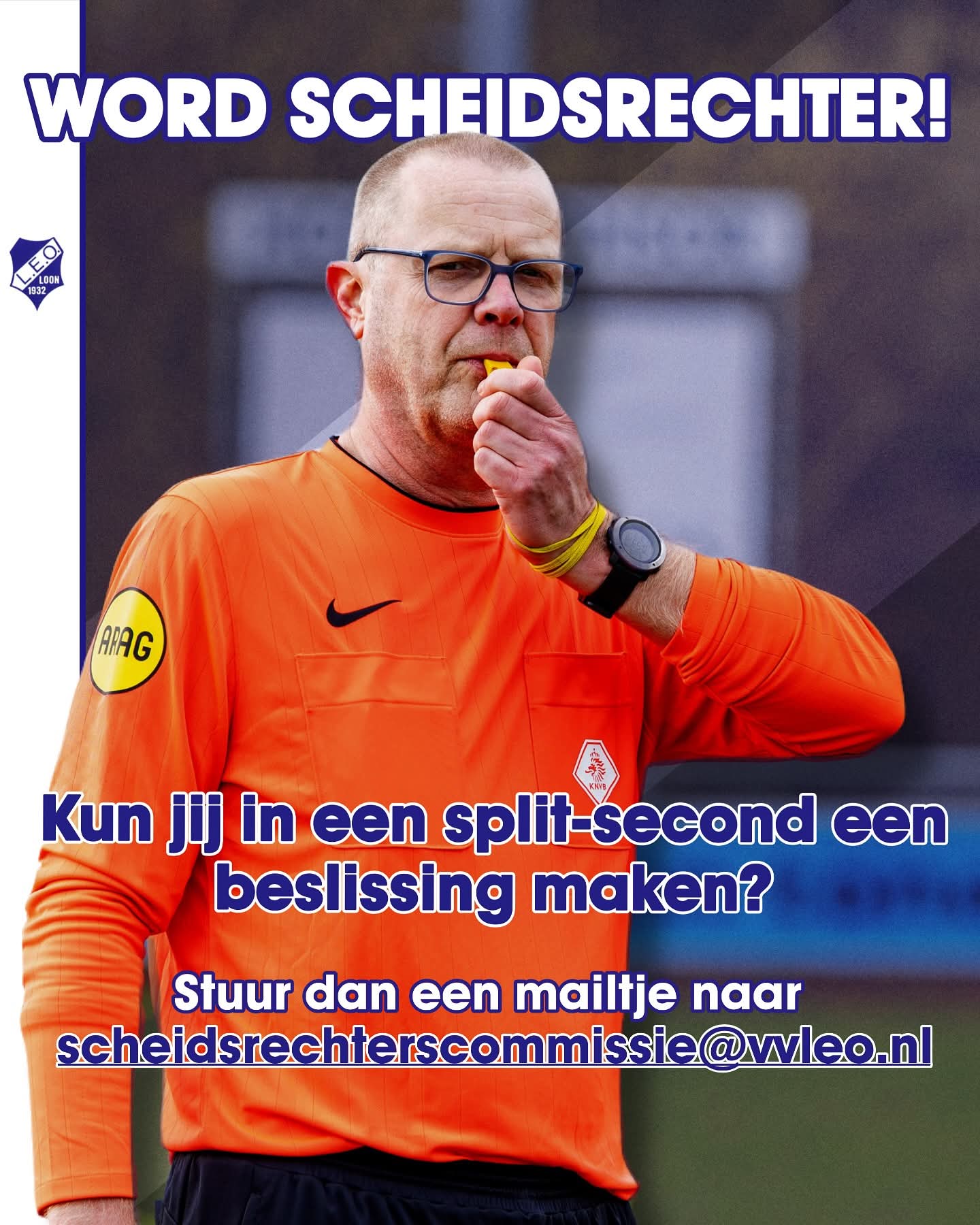 Met veel plezier staan onze scheidsrechters iedere week weer op het veld. Met passie en energie leiden zij de wedstrijden. Door een tekort aan scheidsrechters doen we echter wel dubbel vaak een beroep op ze. Graag verdubbelen we de grootte van ons scheidsrechterskorps.