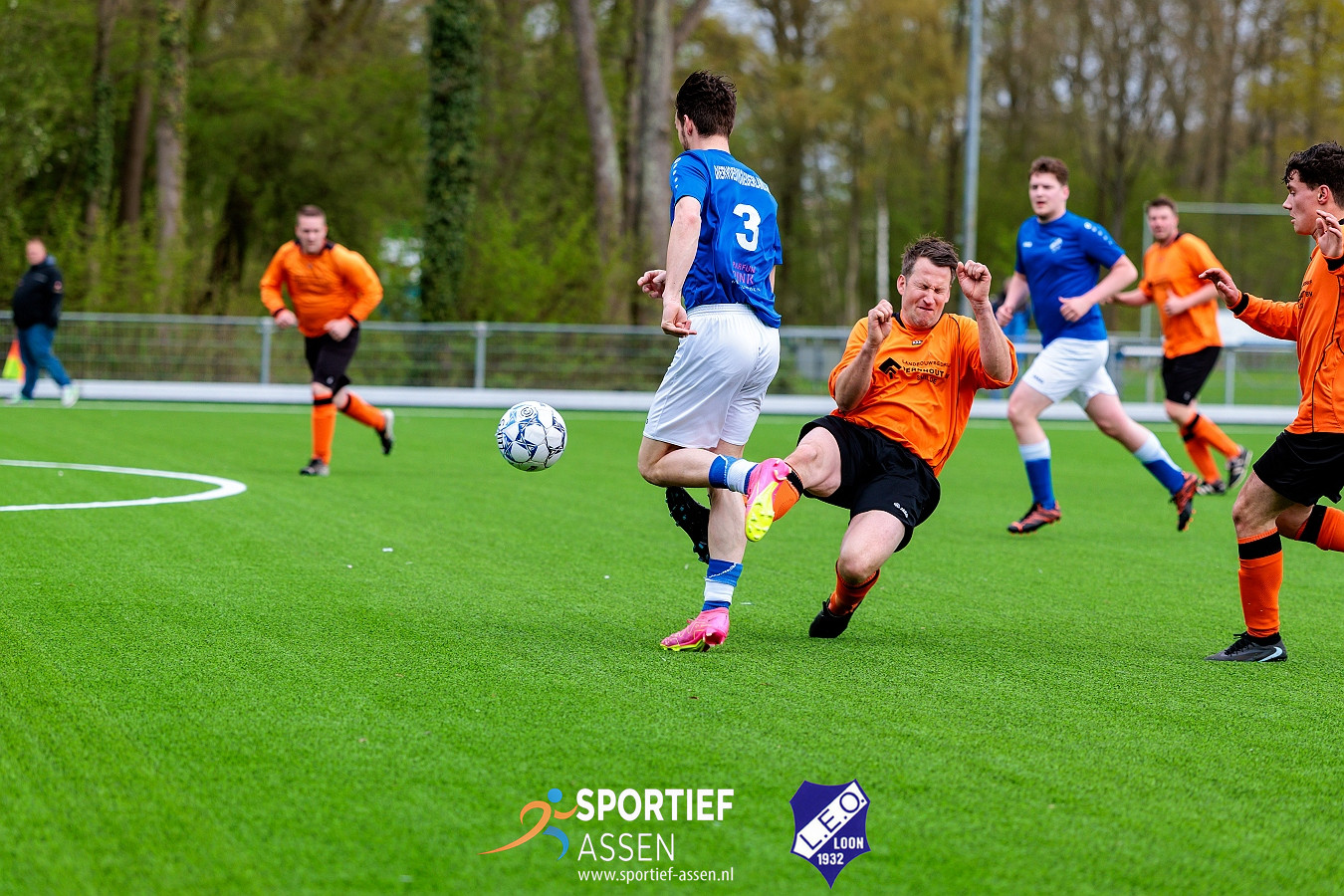 Op het kunstgras van Sportpark Marsdiek in Loon (Dr.) stond deze week de amateurwedstrijd tussen VV LEO 5 en SVDB 1 op het programma. Onder wisselende weersomstandigheden, met regen en motregen die het de spelers én de fotograaf niet altijd makkelijk maakten, ontspon zich een aantrekkelijke en sportieve voetbalochtend.